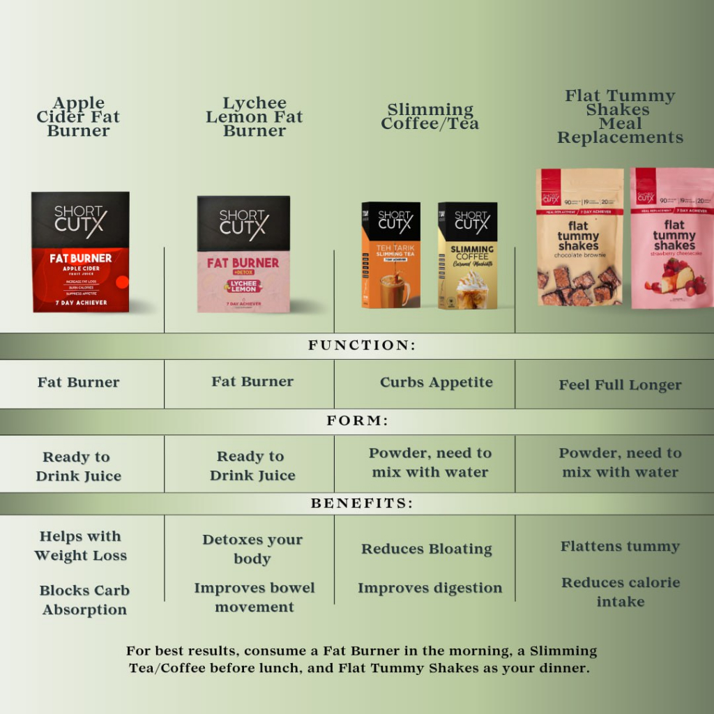 (FREE GIFT) (FREE SHIPPING) Shortcutx Apple Cider Vinegar Weight Loss Fat Burner Fruit Juice Slimming Tea Teh Tarik