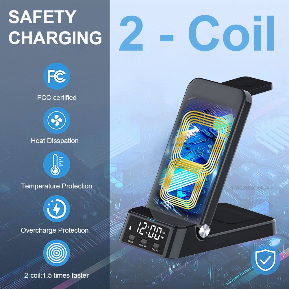 Mini Bluetooth Speaker Multifunctional Wireless Charger Speaker with Alarm Clock and Color Lights Fast Charging Speaker