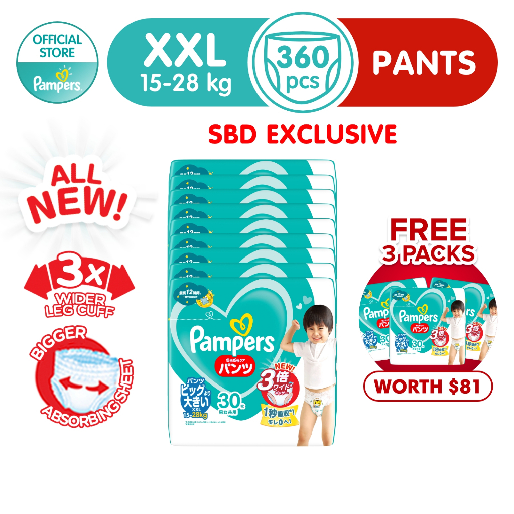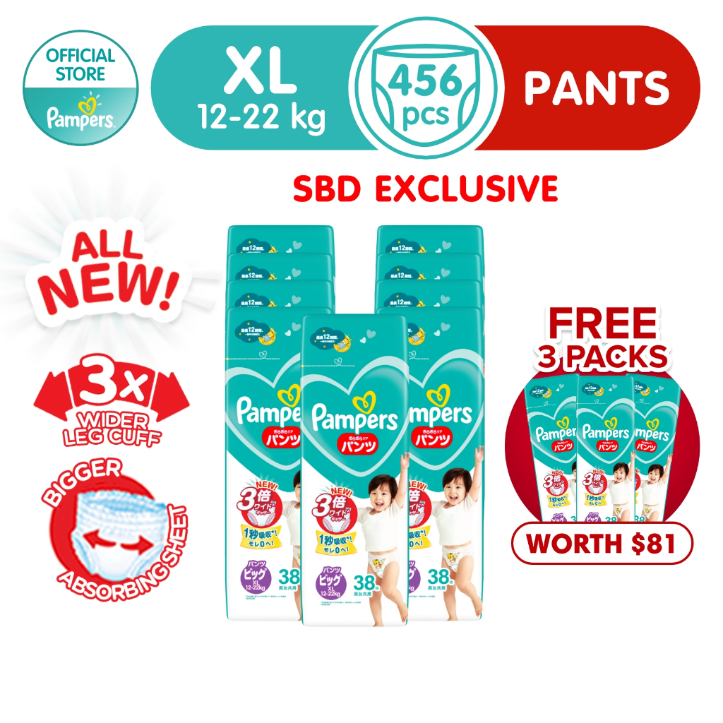 [Buy 3 Carton Free 3 Packs Worth SGD 81] Pampers Baby Dry Pants x1 Carton - SIZE L to XXL