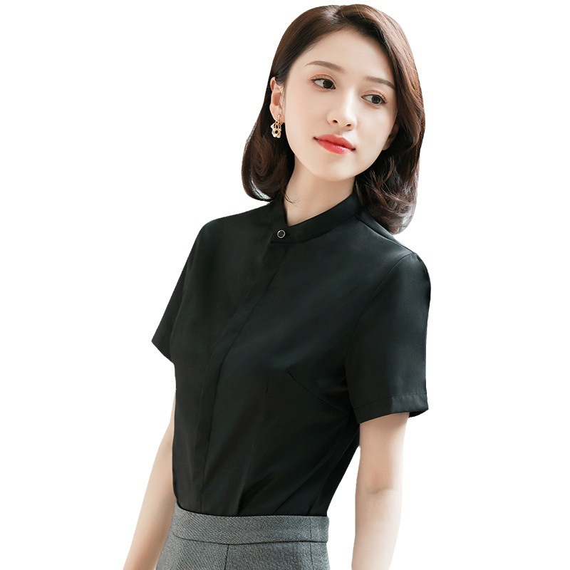 [Ready Stock Free Shipping] Summer Korean Version Solid Color Stand-Up Collar Cotton Temperament Commuter Short-Sleeved Single-Breas