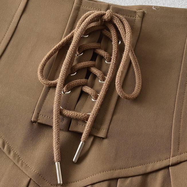 Khaki Wide Tube Drawstring Drawstring Pants Retro Style For Women Bigsize70kg MA403