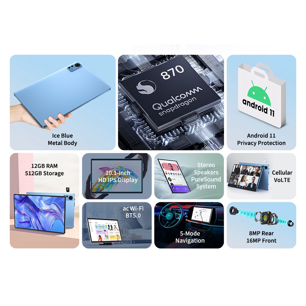 【3 years warranty】2023 New Android 12.0 2k HD Screen Snapdragon 870 Global Tablet 5G Dual SIM Card or WIFI GPS