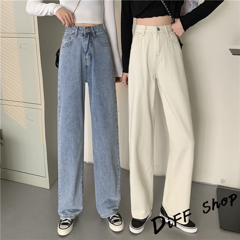 【DIFF】韓版寬鬆顯瘦高腰牛仔褲 寬褲 褲子 長褲 休閒褲 女裝【P102】