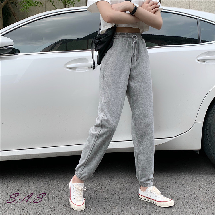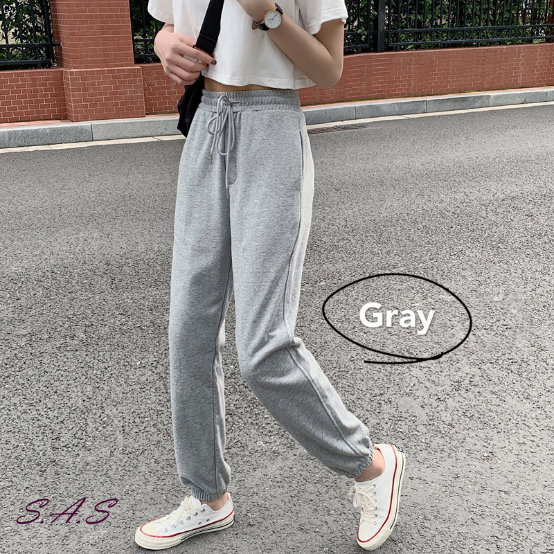 灰色哈倫棉褲 顯瘦高腰休閒褲 哈倫褲 棉褲 寬鬆百搭束腳運動褲 運動褲 休閒褲 長褲 高腰 顯瘦 SAS 【1231P】