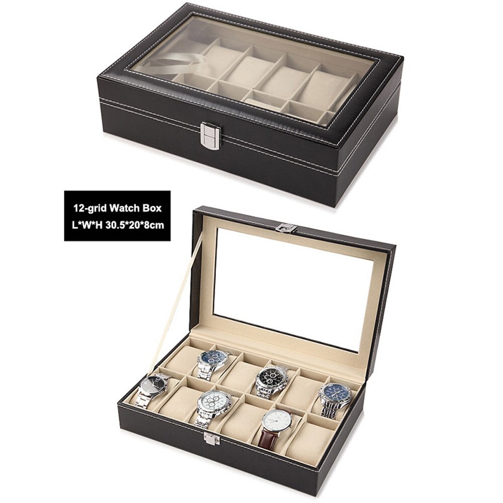 ?CHEAPEST!!!? Watch Box Storage Case - PU Leather Accessories Glass Top Jewelry Organizer 6 10 12 20 Slots Watchbox