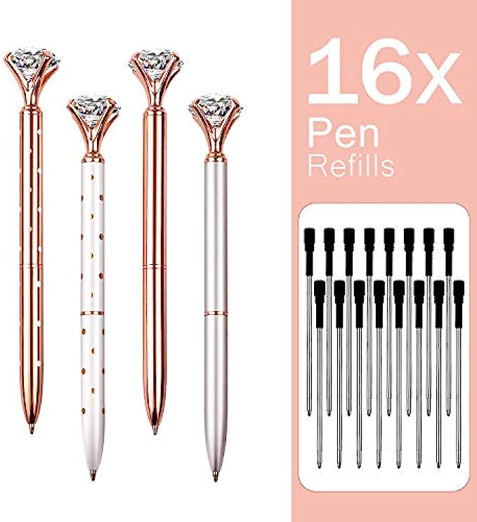 • 16 pieces diamond pens in different colors, silvery, rose gold, rose gold decorated with white dots, white decorated with rose gold dots, black inks refill.