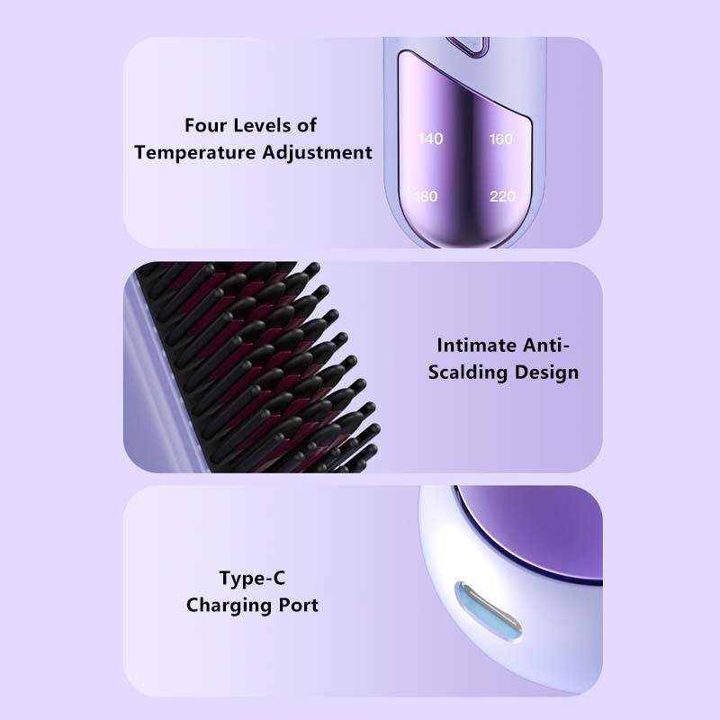 2024 NEW Premium Quality Hair Straightener Comb Curler Wireless Hair Straightener Negative Ion 无线直发梳