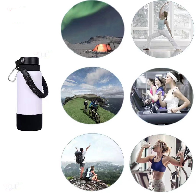 Quality:good Performance:good Appearance:good Bought the boot set for my Hydro Flask The bootie fits well and with a good height so that it doesn’t slip off easily. The carrier comes with a rubber ring that’s not elastic and thus is meant to fit specific cap size. I remove the ring and use the carrier which is adjustable. The carrier is made of strong material and is well woven. Solid and tight; should be able to carry large heavy tumblers.