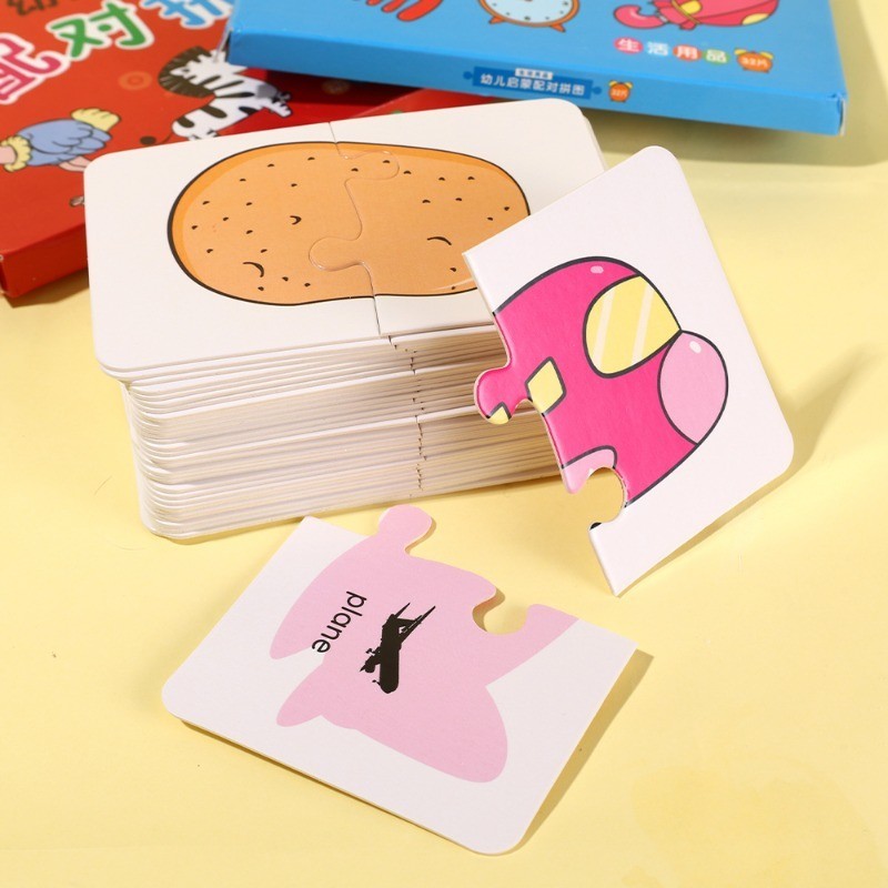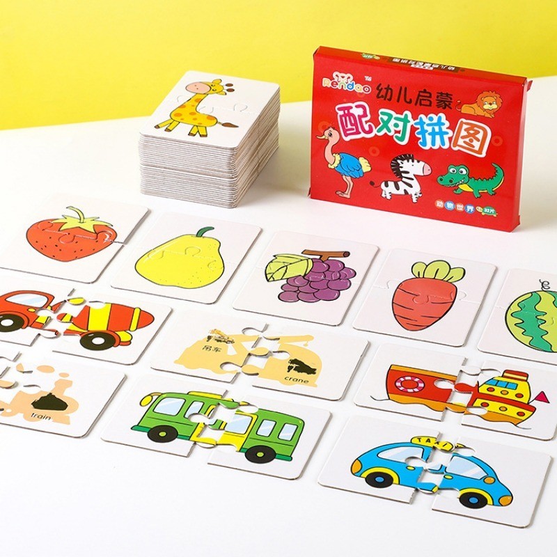 32Pcs Toddler Matching Card - Early Montessori Education Puzzle Toy - Cartoon Animal Fruit Truck Pattern - Graph Card Matching Game - Children Shape Cognitive Training Jigsaw