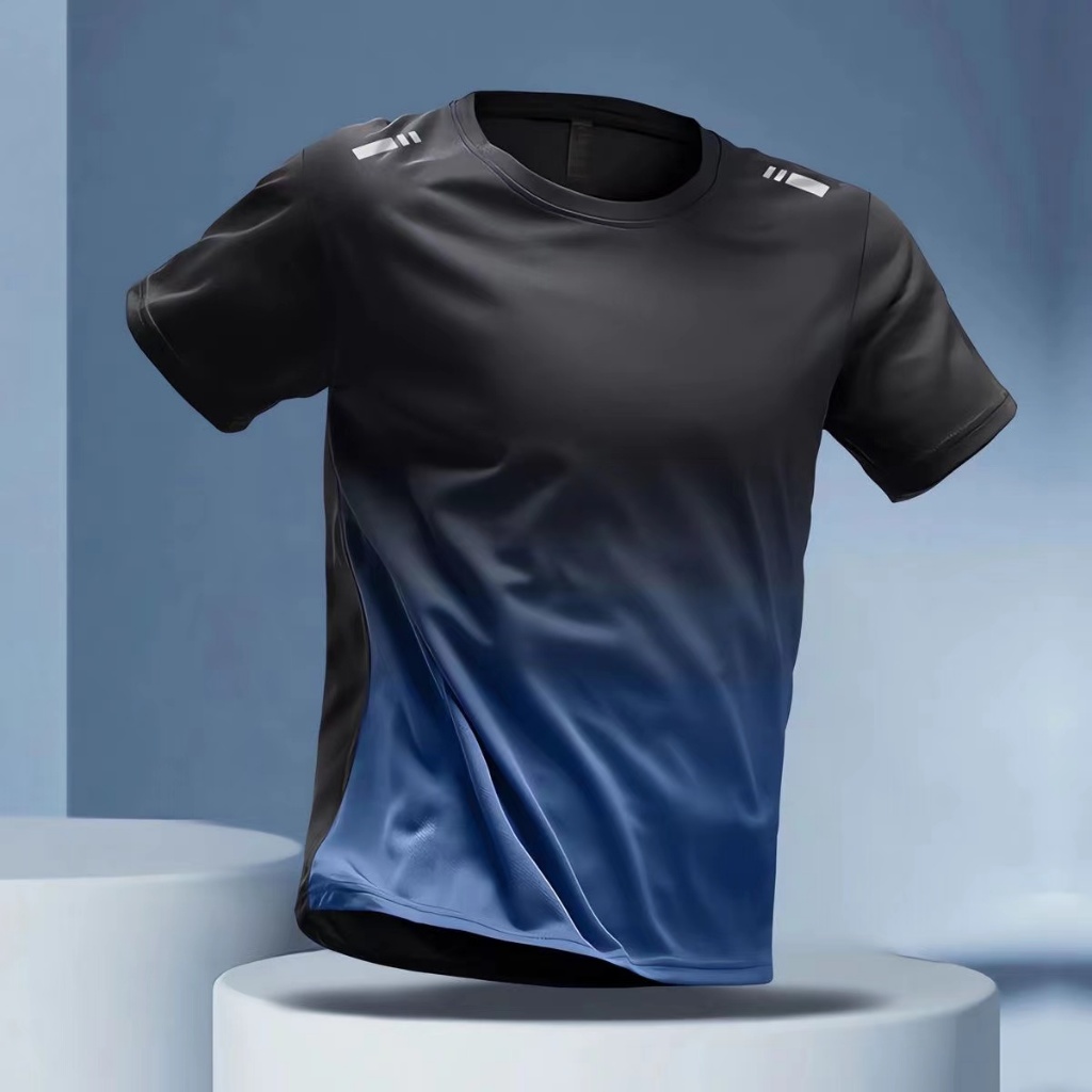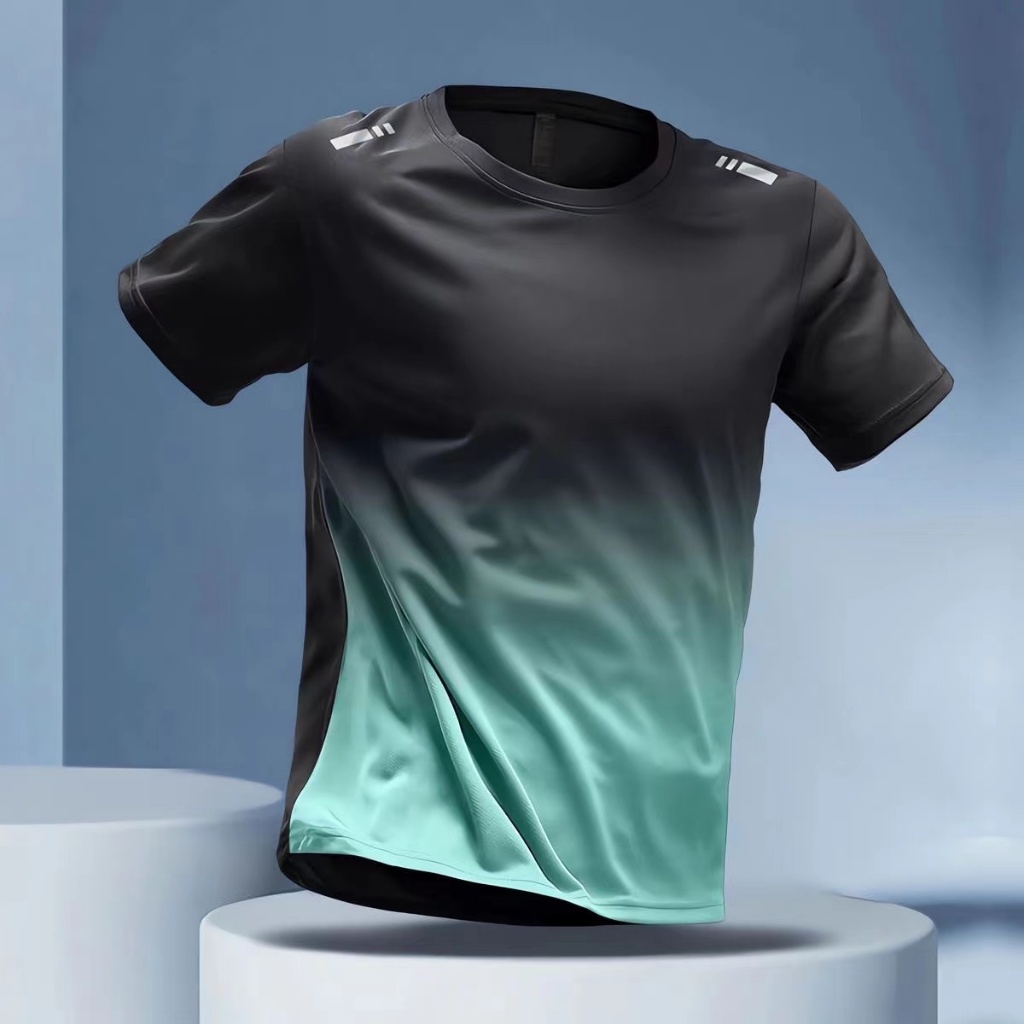 6 Colors Summer Men's Short-Sleeved T-Shirt Unisex Quick-Drying T-Shirt Sports T-Shirt Stretch Gradient Color Fitness Clothes Round Neck Pullover Casual
