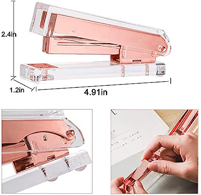 【WHAT YOU GET】When you buy this chic desk accessories gift set you will get one rose gold stapler, one tape dispenser, one staple remover, one tape and 1000pcs staples. These bling office supplies are decorative and yet professional. Perfect for the classroom, home, desk, or as executive office decor.