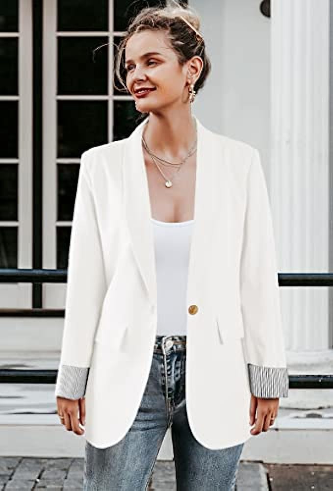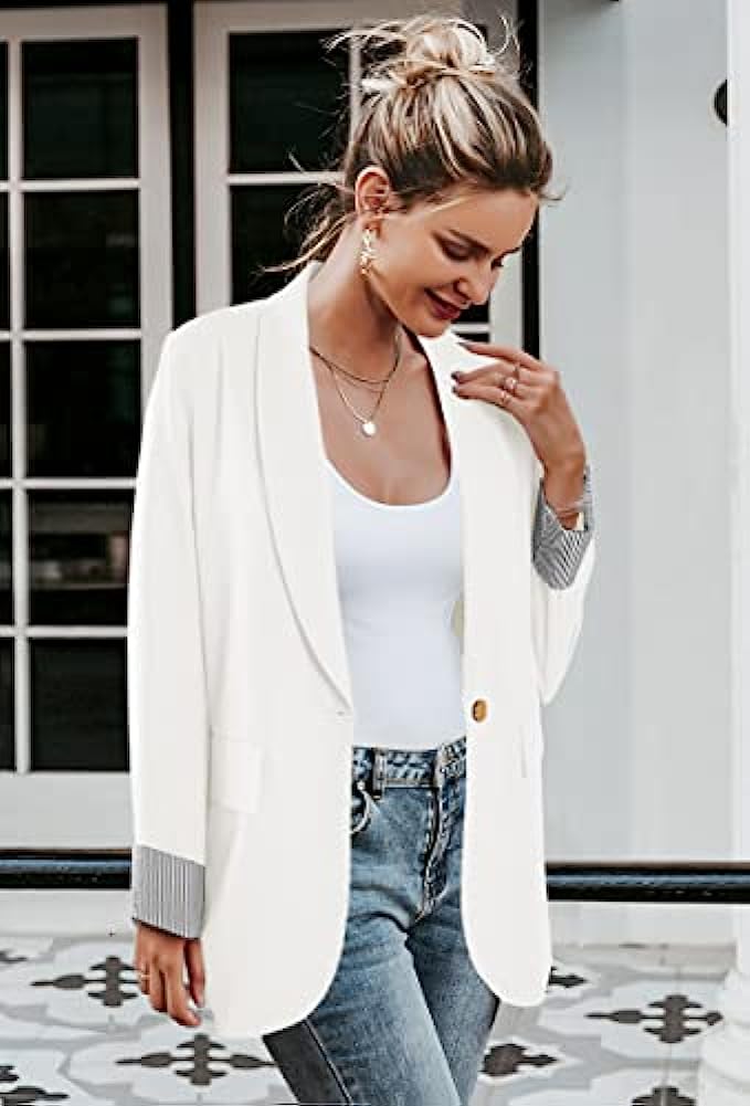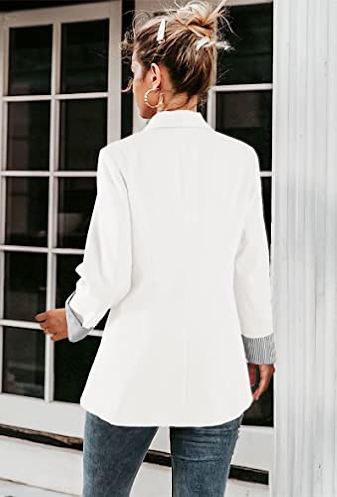 Aoysky Womens Blazer Jacket Casual Open Front Button Loose Fit Long Sleeve Office Work Suit Coat with Pocket