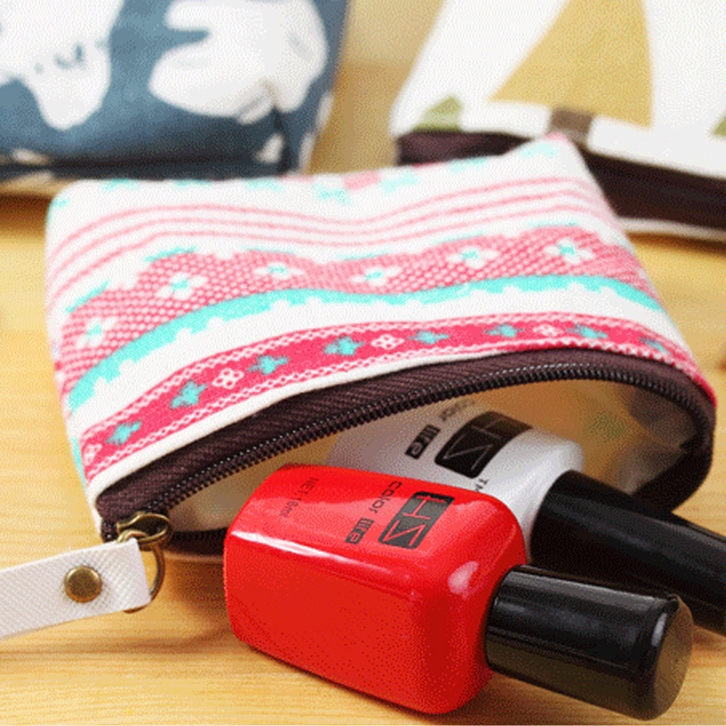 Cartoon Pattern Zipper Headset Key Bag Retro Coin Purse