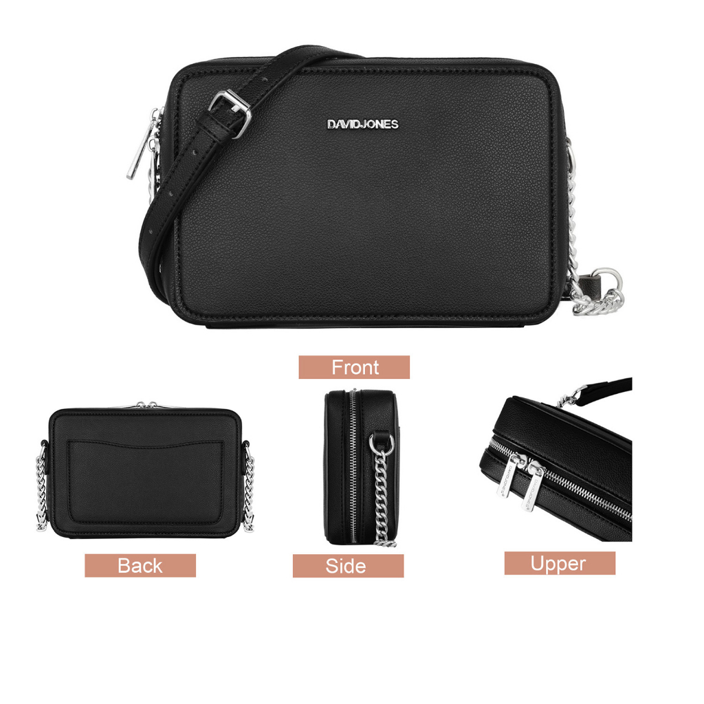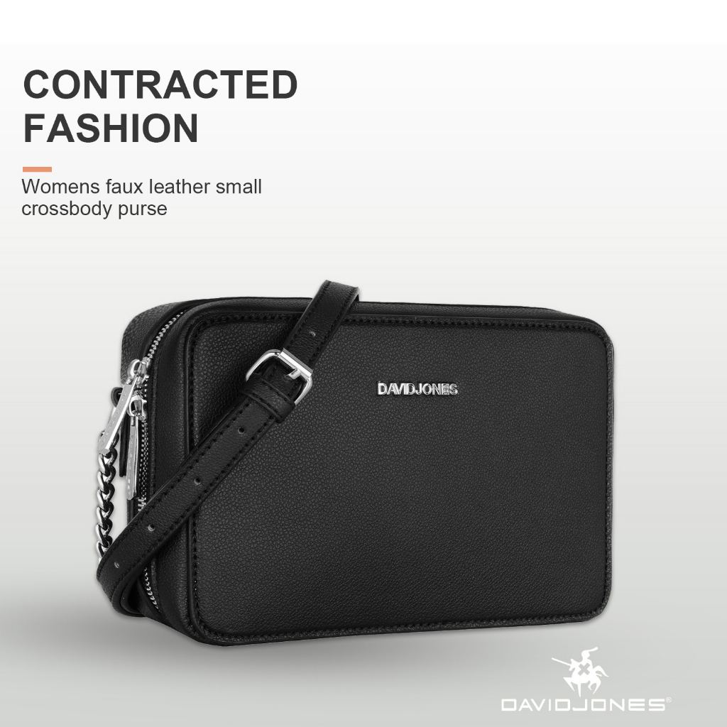 David Jones Paris women shoulder bag pu leather female crossbody bag chain small square bag