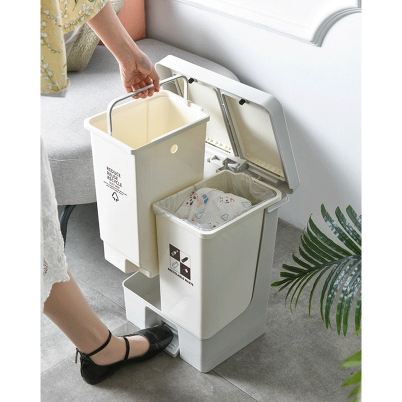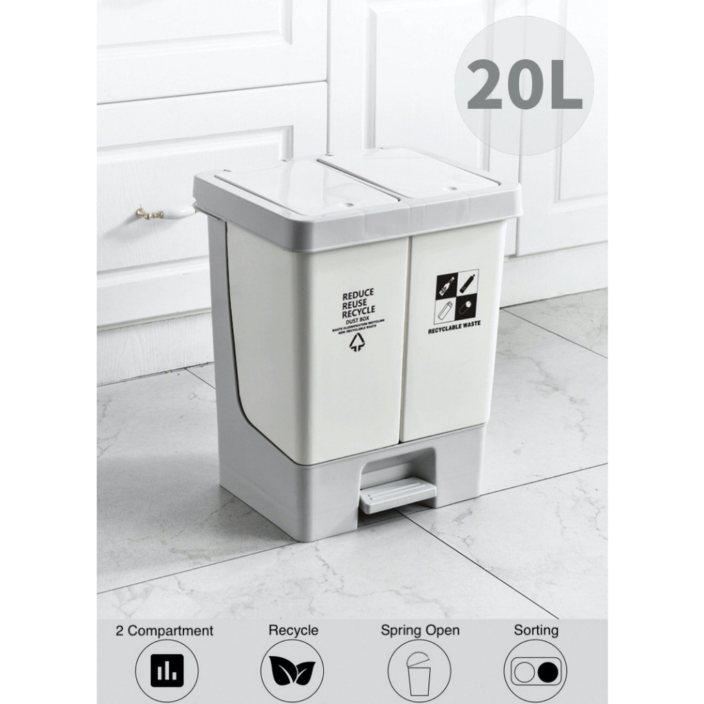 Easyhome.sg 20L Dual Compartment Trash Bin Dustbin Rubbish Double Separate Sorting Bins Wet Dry Garbage Recycling Bin