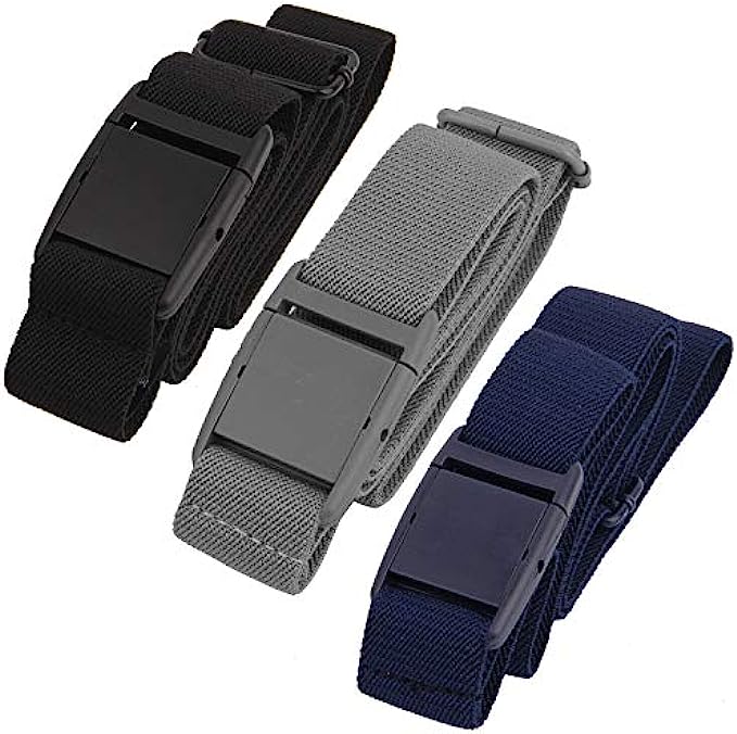 Elastic Buckle closure Wet Wipe Clean Smooth and Elastic Fabric Belt Strap / 1.25 inch wide belt strap is perfect for jeans and most pants with smaller loops. The Standard fits women's sizes 0-14 / the Plus Size fits women's sizes 0-4X Unlike other bulky metal buckle, This flat PVC buckle creates no bulge Adjusts like a bra, this belt will fits nicely for any waist size