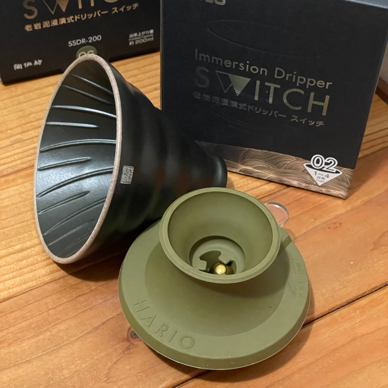 HARIO x Pottery Workshop Switch Old Rock Mud 02 Filter Cup Immersion Volcanic Black/Olive Green SSDR-200