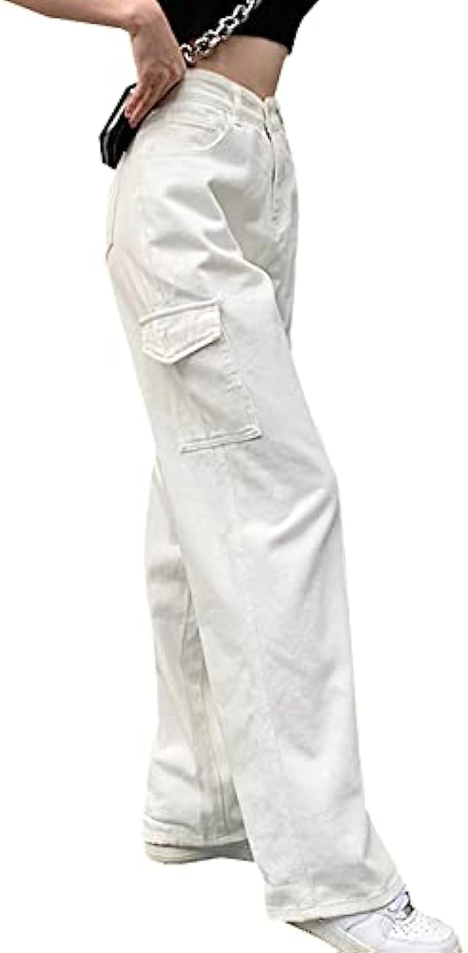 Polycotton Imported Vintage y2k brown baggy cargo denim pants follow modern western fashion trendy to release yourself Casual wide leg straight baggy denim jeans with classic pockets which are deep and big enough to put your phone or other things Baggy jeans for women high waist great stretchy based your bodycon to choose oversized one make your casual loose relax feeling Fashion denim cargo jeans match with any style tops show your retro streetwear or casual daily wear make unique charming Please check size info to ensure your size prior to ordering