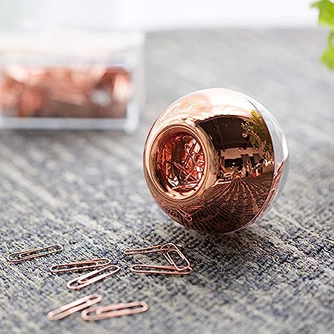 MultiBey NE0600607 Light Luxury Fashion Paper Clips, Rose Gold Edition, In Round Paper Clip Holder With Magnetic Lid, 28 mm, 100 Piece Per Box