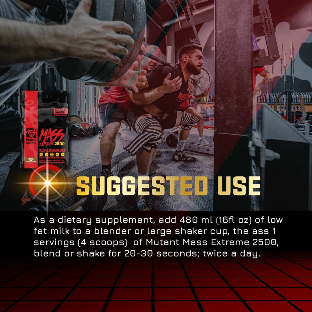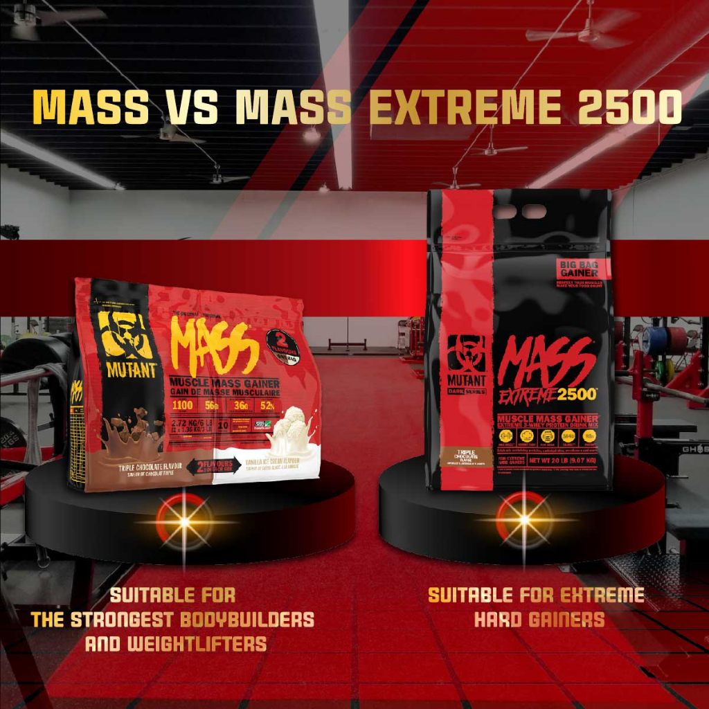 Mutant MASS EXTREME 2500, Muscle Mass Gainer, Whey Protein with high calories for extreme hard gainer, 6-12-20 lbs