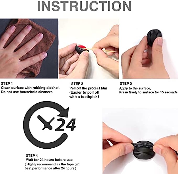 Easy Use: Simply peel and stick your adhesive cable clip anywhere. Please kindly take a moment to the surface before sticking them which make them holding tight