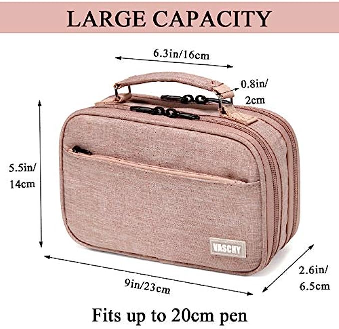 • ✎EASY TO CARRY: The Vaschy double zipper pencil case is designed with a convenient top handle to carry. It is made of sturdy polyester, this case is built to last.It is lightweight yet durable and highly tear-resistant, making it a perfect material for making pen cases that will stand up well to regular use.