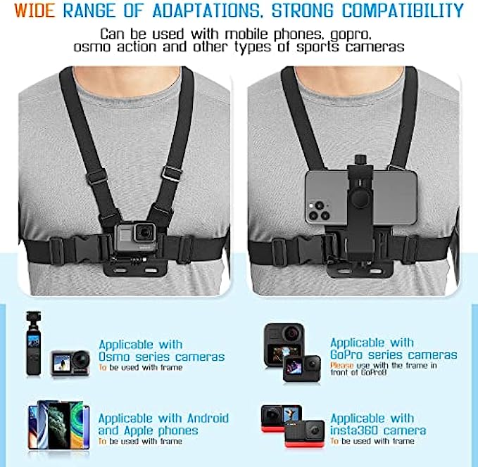 • 【Mobile phone / sports camera VLOG shooting stand】:This mobile phone chest strap holder for video shooting is the best tool to help players shoot excellent VLOG/POV videos in the first person perspective (FPV). You do not need to hold the GoPro motion camera / mobile phone, and release your hands to bring more freedom.
