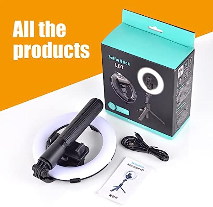 • 【Package Include】(1) 1 x 10.2” LED Ring Light, (2) 1 x Adjustable Tripod Stand, (3) 1 x Phone Holder, (4) 1 x Wireless Selfie Remote Control, (5) 1 x Product Manual.