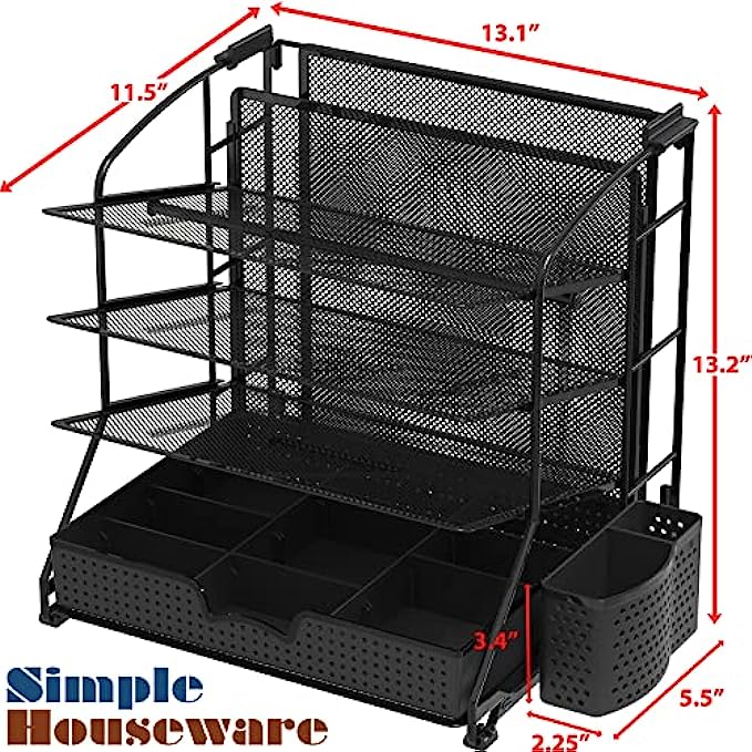 SimpleHouseware Desktop Document Tray Organizer with Sliding Drawer/Caddy/Hanging File Section, Black
