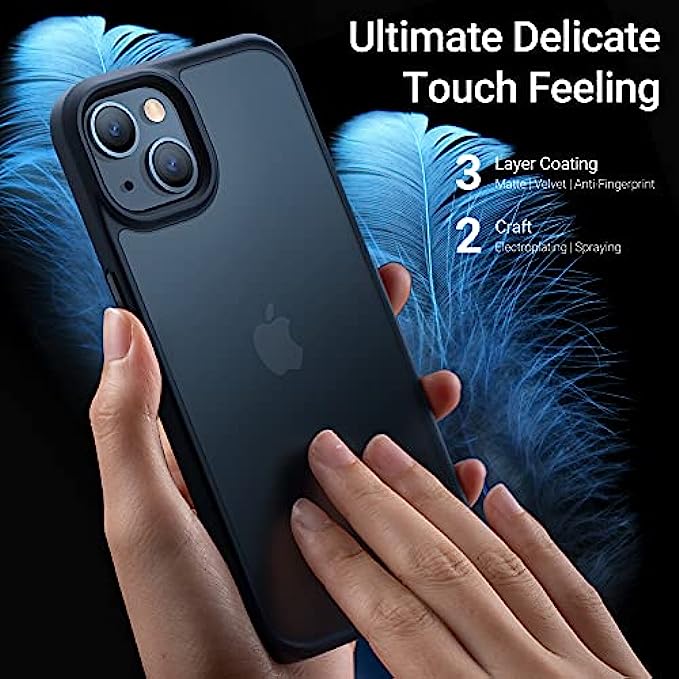 • EXCELLENT GRIP & REFINED DESIGN: Rubberized elegantly curved edges and a matte coating on the back ensure superior grip, along with a silky feel that differs from silicone or glossy cases that often stick to pockets and collect lint. Our Nano-Oleophobic and hydrophobic coating throughout the back effectively keeps the device away from smudges, fingerprints, and scratches. The semi-clear design brings the phone a layer of chic mystery that won't fade or gets dirty like iPhone 13 clear cases.