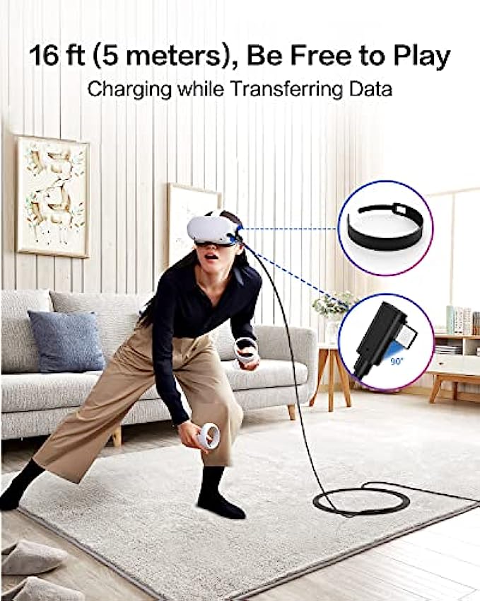 • Ergonomic Design with Cable Tie: The USB-C port with a 90° design fits comfortably with your Oculus Quest 2/1 VR headset. The included cable tie make the cable fit snugly on your Oculus Quest 2/1 and protect your USB ports from damage.