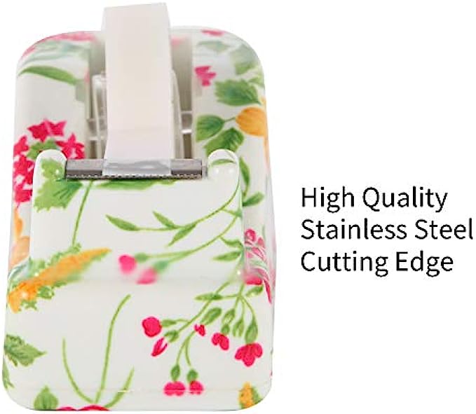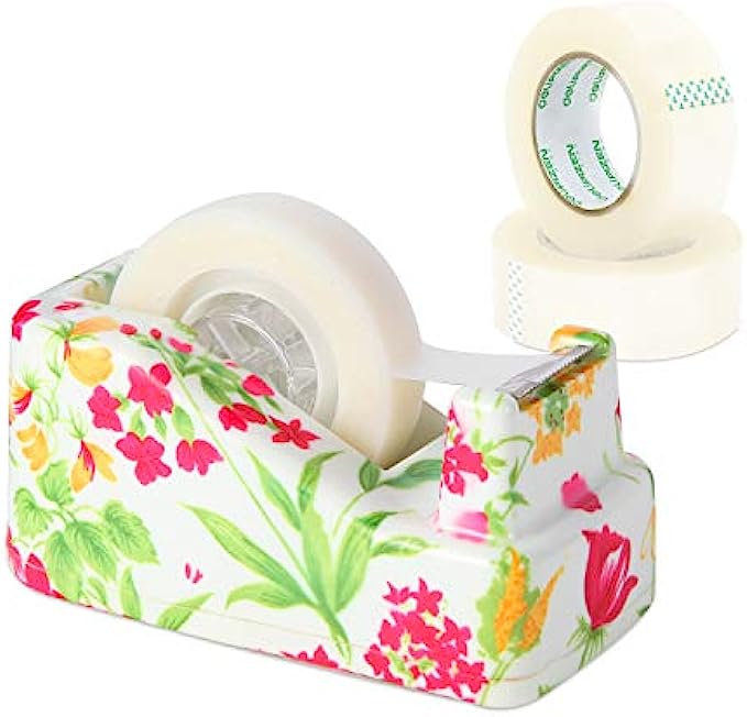 VIBRANZ-LAB Cute Tape Dispenser Desk Home Office Desk Supplies Fun Desk Accessories Floral Office Tape Dispensers Cute Office Supplies for Women Desk Weighted Non-Skid Non-Slip Base