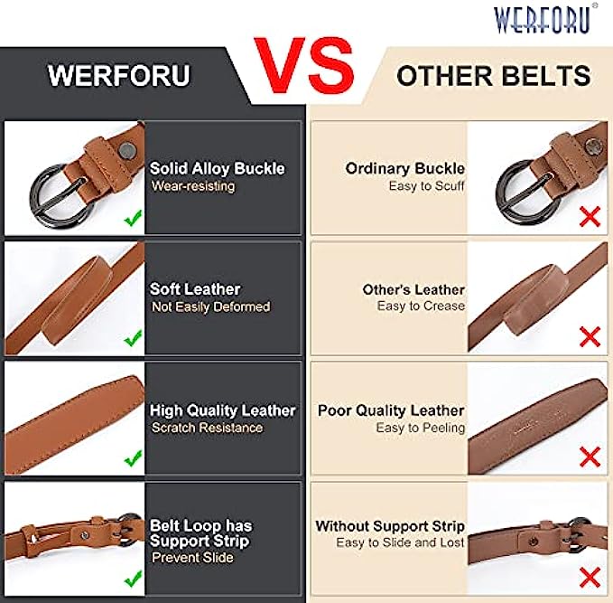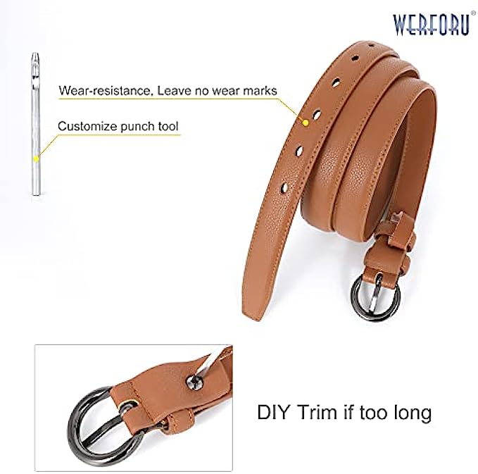100% Leather Import Pin closure Dry Cloth Clean MATERIAL- High quality leather belt + high quality alloy pin buckle, simple stylish design without any superfluous decoration. DESIGN- Solid pin buckle skinny thin waist belt in black brown coffee and white colors to match your different outfits and give you the classic look.One order for two different color belts. OCCASIONS - This simple yet stylish belts for Jeans pants dress.Vintage belt will match your wears for different occasions. An accessory to keep for multi-purpose and the practicality as well as exquisite.