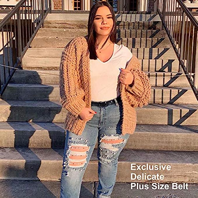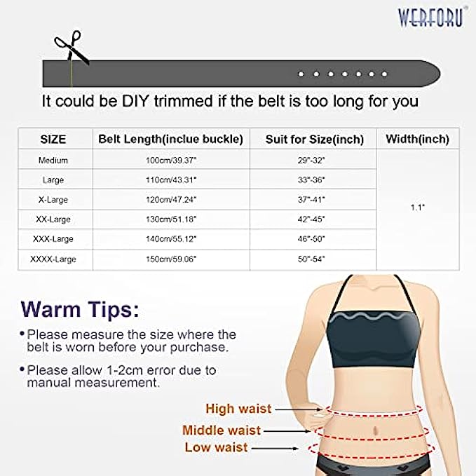 100% Leather import Buckle closure Dry Cloth Clean Plus Size --- Perfect for women waist size from 29" to 54". This lady's belt is mainly designed for plus size, we determine the size based on the waist size of many women. Our aim is to bring convenience to plus size lady jeans, but also make them fashionable and classic. High Quality Material --- This women plus size belt is made of quality leather that is pretty soft and comfortable to wear. Clear texture on the belt strap and smooth touch feeling. Our plus size lady belt is sturdy enough to be used for years. Buckle & Adjustbility--- The buckle is made of polished metal that always keep bright shine but also low profile. You can DIY trim the belt to get perfect fit. (Punch tool and instruction are supplied.)