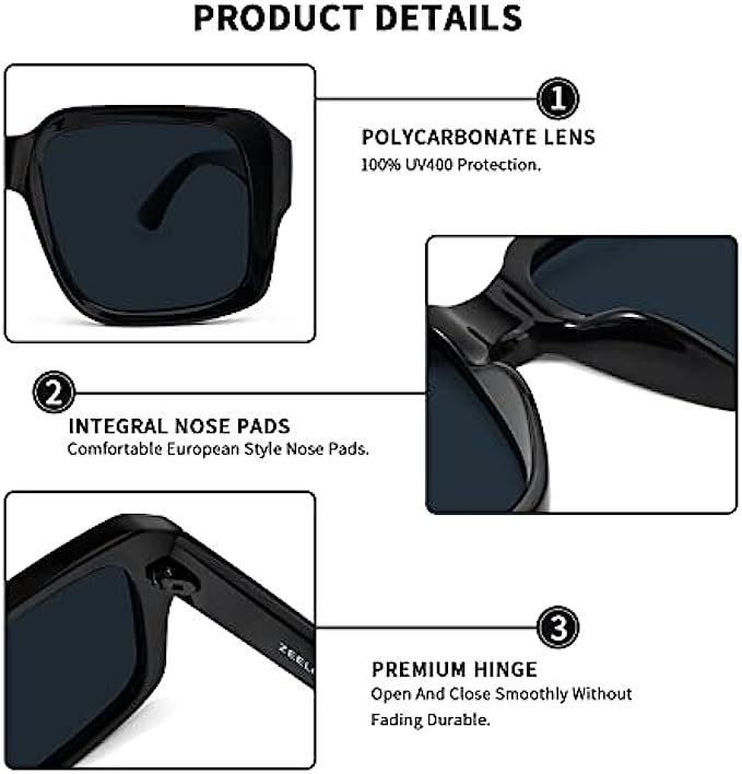 Zeelool Oversized Square Sunglasses for Women Men Simple Trendy Style Shades UV400 Protection Sun Glasses ZSP0028