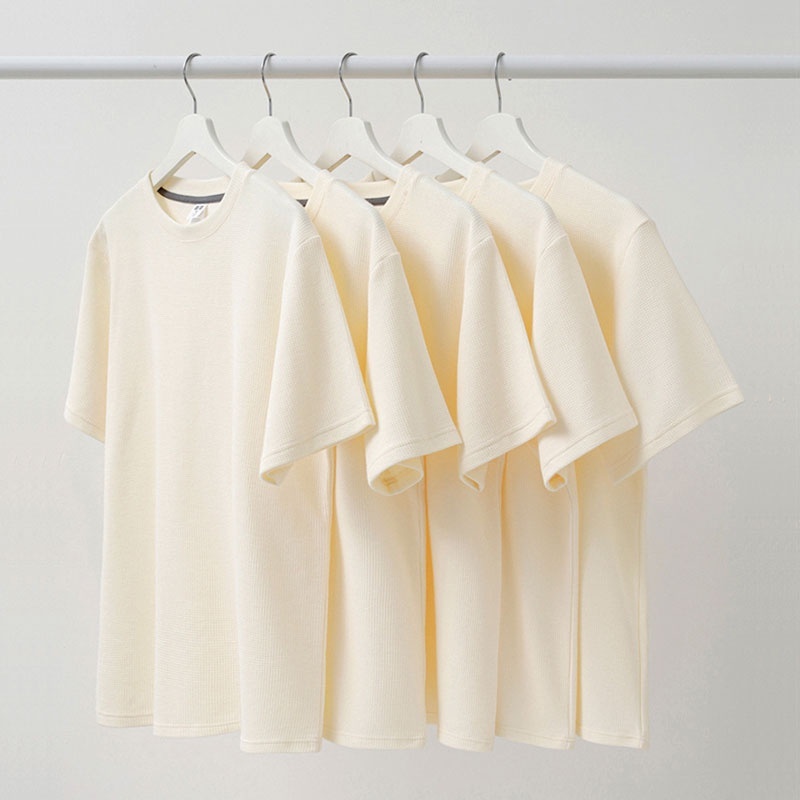 Summer New Waffle Plain T-shirt and Shorts Quick Dry Loose Comfort Sports Home Suit One Set Men Outfit Women Beige Coffee Black White Grey Red Green