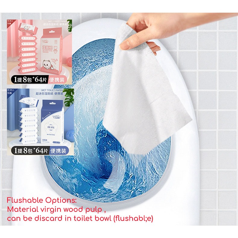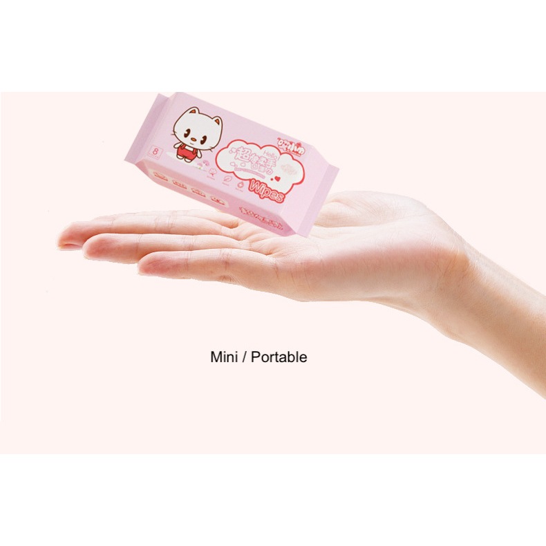 Easyhome.sg 8Packet Mini Wet Wipes / Flushable Wet Tissue Option avail/ Portable Baby Wipe Purified Pure Water Safe use