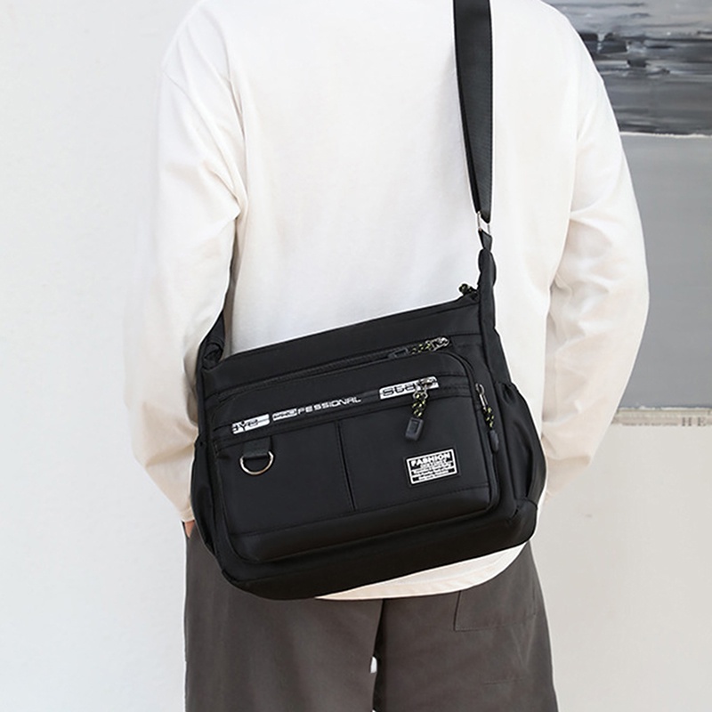 [XKB] 1 [READY STOCK] Waterproof Messenger Bag, Men's Messenger Bag, Functional Tooling Bag, Black Large-Capacity Sports Bag