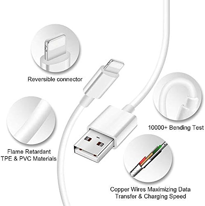 【Apple MFi Certified Lightning Cable】- With the Apple MFi Chip, the USB to lightning cable cord equips automatic chip recognition function. The Apple MFi Certified ensures 100% flawless compatibility with Apple devices. No more trigger warning messages.