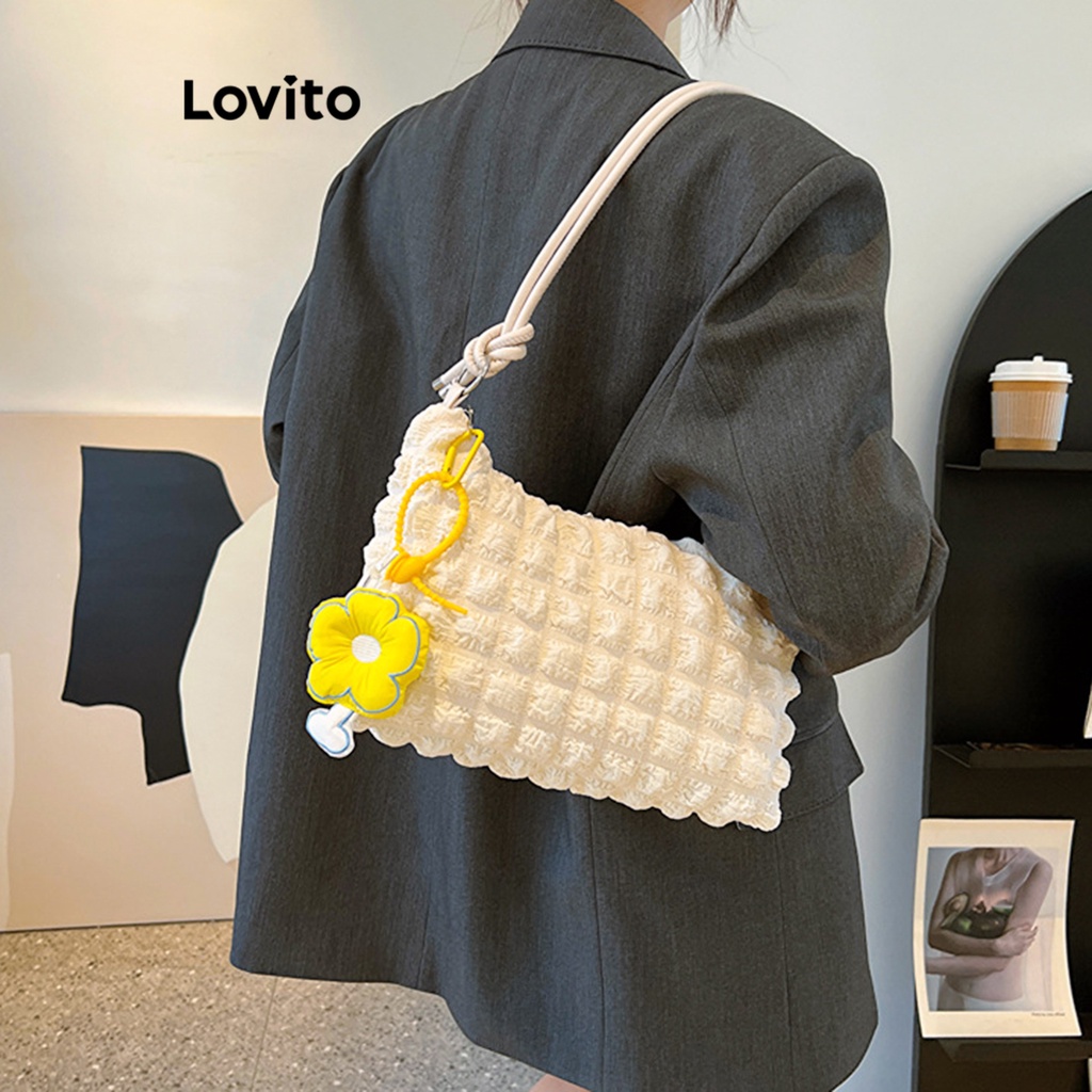 Lovito Casual Plain Basic Small Shoulder Bag for Women L69AD089 (White/Purple/Green/Black)