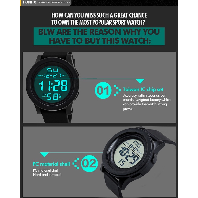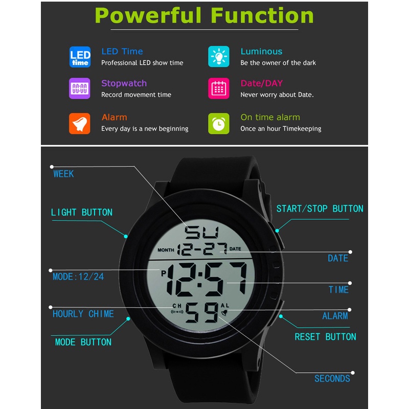 Men's Fashion Sports Waterproof Watches Multifunctional Electronic Wristwatch