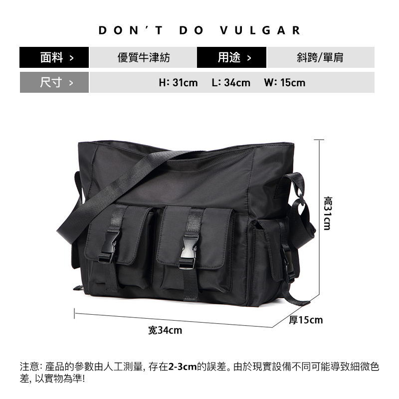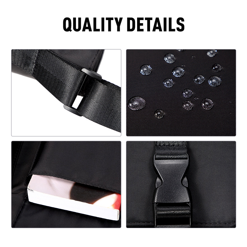 Material Quality:Good material as it is waterproof Colour:Black same as picture Many pockets available, good quality