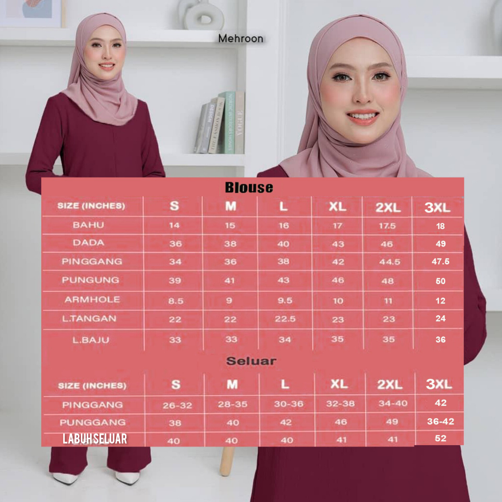 SUIT HIDAYAH IRONLESS SET WARDA PLUS SIZE BLOUSE BERPOCKET (S-2XL) BF & WUDHUK FRIENDLY, LONG BLOUSE AND PANTS SET