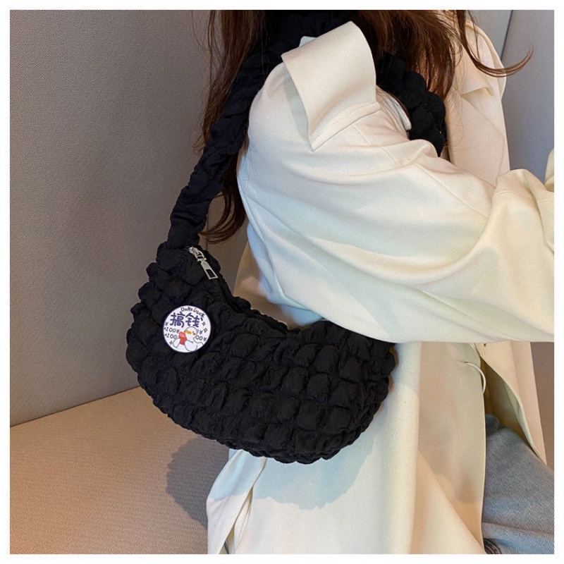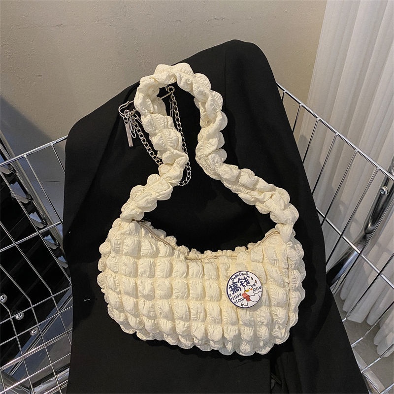 Pleated Cloud Underarm Bag 2023 New Style Solid Color Shoulder Bag Commuter Pleated Bag Shopping Bag Korean Girl Heart